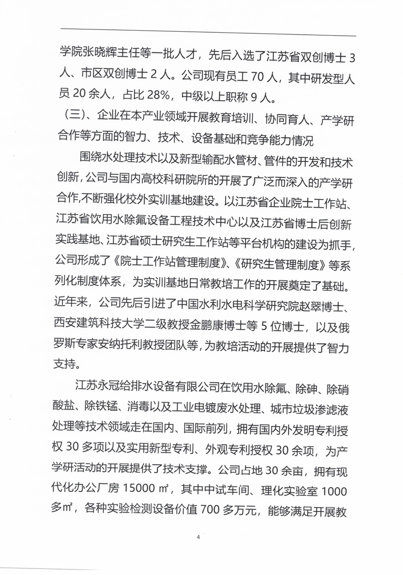 江苏永冠以“科技引导,创新发展,注重人才,规范管理”为理念,在不断强化科研投入的同时,大力开展人才引进培养和运营管理的规范化标准化。
